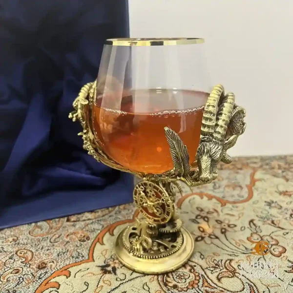 Бокал для коньяка «Зодиак Козерог» воплощает элитарность и силу характера. Это не просто сосуд для напитка, а символ власти, упорства и достижения целей. Художественное литьё из латуни под вакуумом, ручная работа и объёмное литьё знака Козерог делают бокал уникальным предметом роскоши.Форма бокала раскрывает тайные нотки коньяка, позволяя погрузиться в атмосферу успеха. Натуральная кожа на основании защищает как сам бокал, так и поверхность, на которой он стоит.