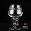 Изделие состоит из литого латунного подстаканника и стеклянной чаши. Данная комбинация придает изделию впечатляющий вид, наделяя его одновременно нежной грацией и впечатляющей харизмой.