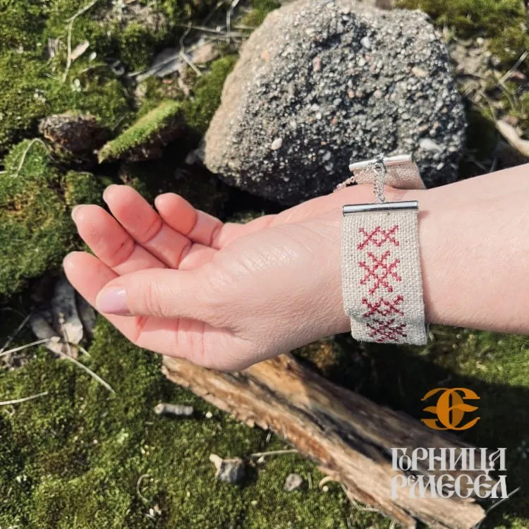 Изящный тканевый браслет из натурального льна с вышивкой — воплощение традиций и современного стиля. Лёгкий и удобный, этот аксессуар подчёркивает индивидуальность и прекрасно сочетается с любым образом. Декоративный элемент – вышивка, выполненная вручную, придаёт браслету особую ценность. Дополнительная цепочка 5 см позволяет регулировать размер для комфортной посадки.