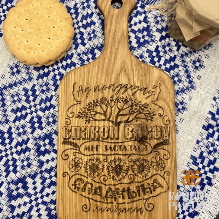 Деревянная подставка с ручкой «Символ Беларуси» — это воплощение традиций и природной красоты. Изготовленная вручную из прочного дуба, она обладает натуральной текстурой, которая наполняет пространство уютом и теплом. Обработанная льняным маслом, подставка сохраняет природную прочность и элегантный внешний вид. Благодаря компактным размерам (16,5×12 см) она идеально впишется в интерьер кухни, офиса или гостиной, дополняя его нотками природного стиля. Ее удобная ручка делает использование легким и комфортным. Этот предмет станет замечательным подарком для любителей самобытных изделий, туристов и тех, кто хочет увезти частичку Беларуси с собой. Аутентичный сувенир, отражающий богатство ремесленного наследия!