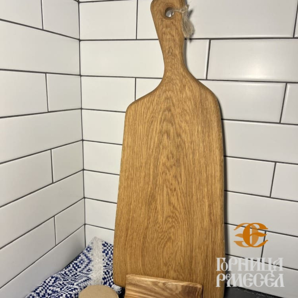 Познакомьтесь с деревянной разделочной доской с ручкой — идеальным сочетанием элегантности и функциональности для вашей кухни! Изготовленная из натурального дуба и обработанная льняным маслом, она обладает исключительной прочностью и природной текстурой. Размер 50×20 см и толщина 2,5 см обеспечивают удобство работы, а эргономичная ручка делает использование максимально комфортным. Эта доска универсальна — она идеально подходит как для разделки продуктов, так и для сервировки блюд, превращая обычное приготовление пищи в настоящее искусство. Каждое изделие — ручная работа, созданная белорусскими мастерами с любовью и вниманием к деталям. Такой аксессуар станет прекрасным подарком для туристов, путешественников и ценителей натуральных материалов.