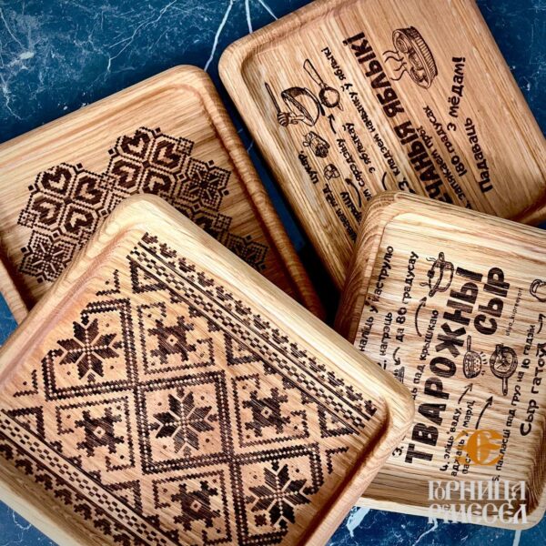 Погрузитесь в атмосферу Беларуси с этой уникальной квадратной тарелкой, выполненной вручную из натурального дуба или ясеня. Каждый элемент — от формы до орнамента — отражает традиции и символику белорусского народа. Геометрический узор, вдохновлённый народной вышивкой, символизирует солнце, жизнь и семейное благополучие.Эта тарелка — не просто предмет декора, а культурный артефакт, который можно увезти с собой как память о путешествии. Лёгкая, прочная и экологичная, она станет идеальным подарком для друзей, семьи или самого себя. Используйте её для сервировки, украшения интерьера или как часть коллекции этнических сувениров.