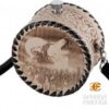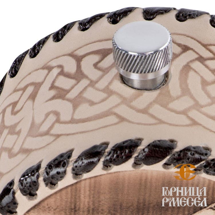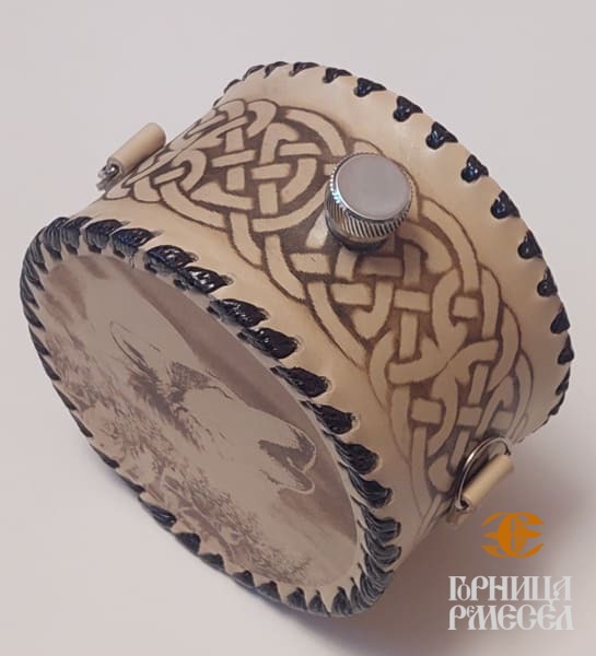 Фляга кожаная 507, 1 л, круглая, белая кожа с рисунком, ремень. Нержавеющая сталь, регулируемый ремень, герметичная крышка. Доставка по Беларуси и СНГ.