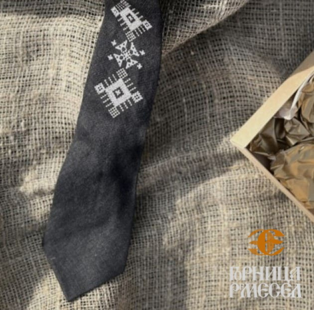 Галстук — это стильный и символичный аксессуар, сочетающий элегантность и национальную самобытность. Изготовленный вручную из натурального льна, он обладает исключительным качеством, комфортом и долговечностью. Чёрный цвет галстука подчёркивает его универсальность и строгий характер, делая его идеальным выбором как для делового образа, так и для торжественных мероприятий. Декоративная вышивка выполнена в традиционном белорусском орнаменте, символизируя силу, дух и культурное наследие. Благодаря длине 148 см, галстук подходит для классического узла, сохраняя элегантный внешний вид. Упаковка в подарочную коробку делает его прекрасным выбором для подарка, который подчеркнёт значимость события и подарит владельцу особенные эмоции.
