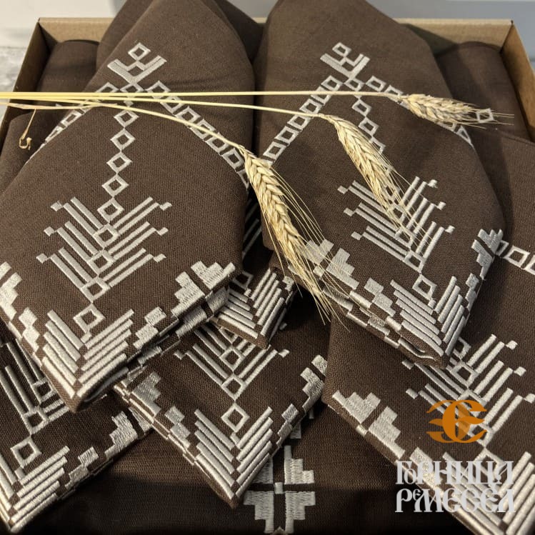 Этот комплект столового белья «Цярэшкi» подчеркнёт вашу любовь к натуральным материалам и традициям, создаст атмосферу уюта и станет достойным подарком для близких или коллег.