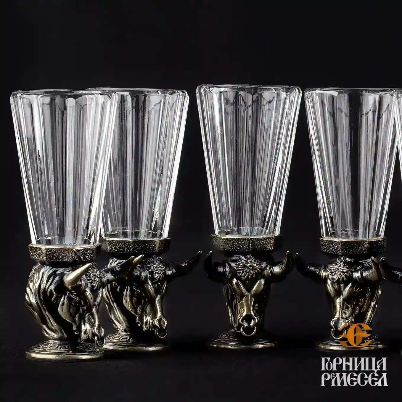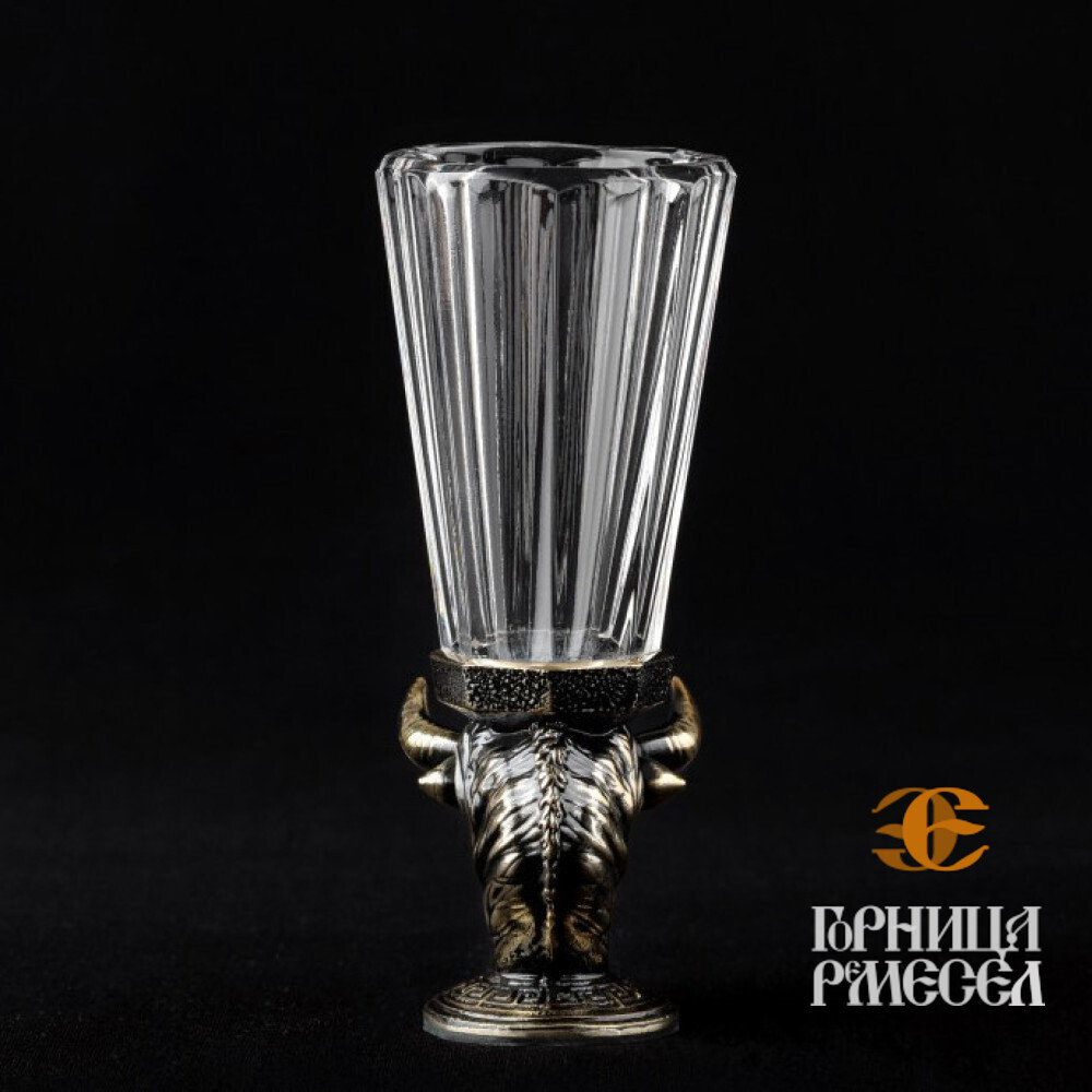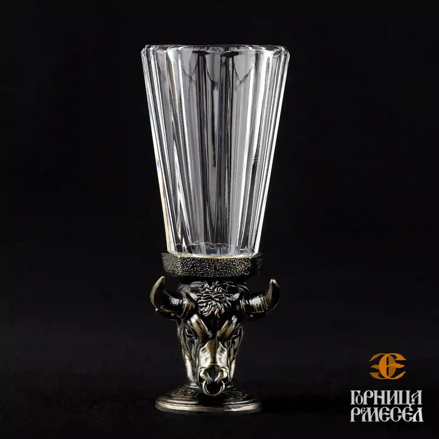 Лафитник «Телец» (50 мл): хрустальная чаша и латунное литьё с символом знака. Ручная работа, упаковка. Идеальный премиальный подарок или бизнес‑сувенир.