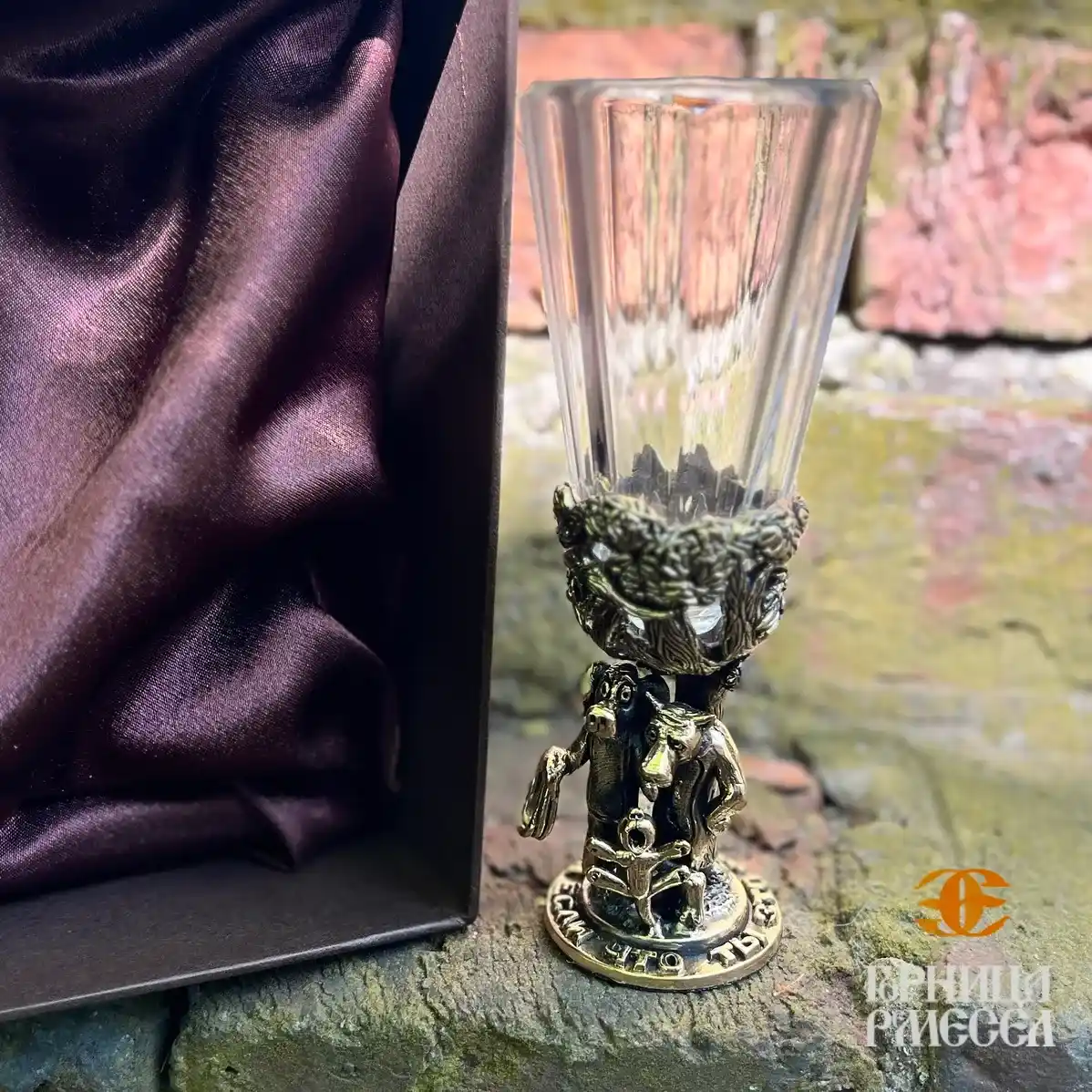 Оригинальный лафитник «Заходи если что» из хрусталя и латуни в подарочной упаковке — авторский сувенир по мотивам мультфильма «Жил‑был пёс». Ручная работа.
