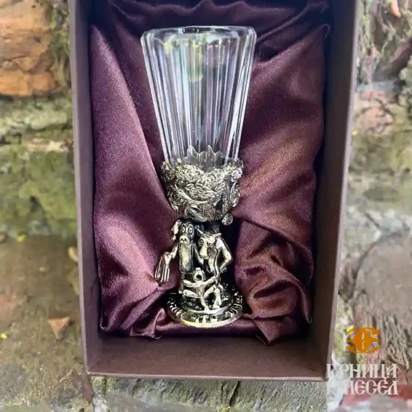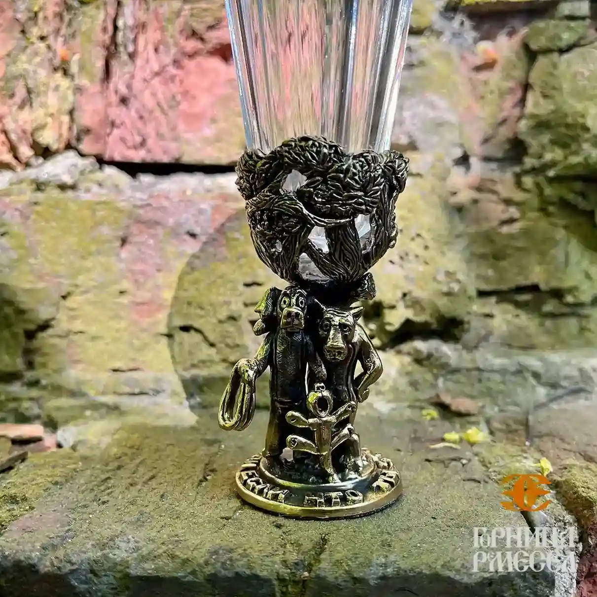 Лафитник «Заходи если что» — авторский сувенир по мотивам легендарного мультфильма «Жил‑был пёс». Хрустальная чаша и латунное литьё воплощают тёплую финальную фразу: «Ты заходи, если что». Этот лафитник станет душевной стопкой, рюмкой или шотом для дружеских посиделок.