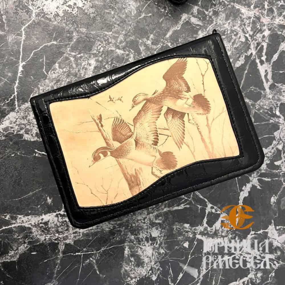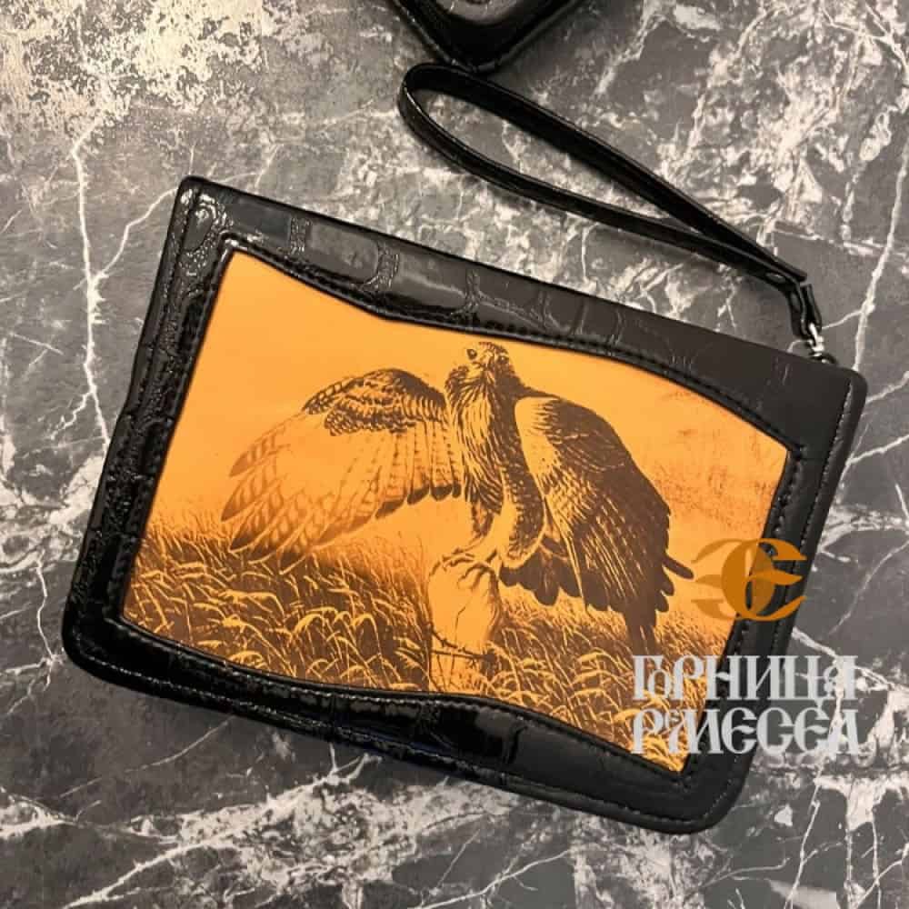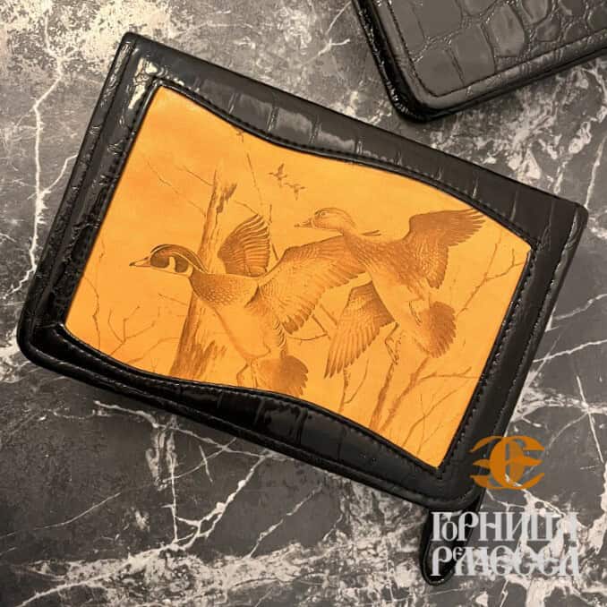 | Внешнее покрытие | барсетка — искусственная кожа, картина-натуральная кожа с нанесением рисунка методом художественного выжигания |