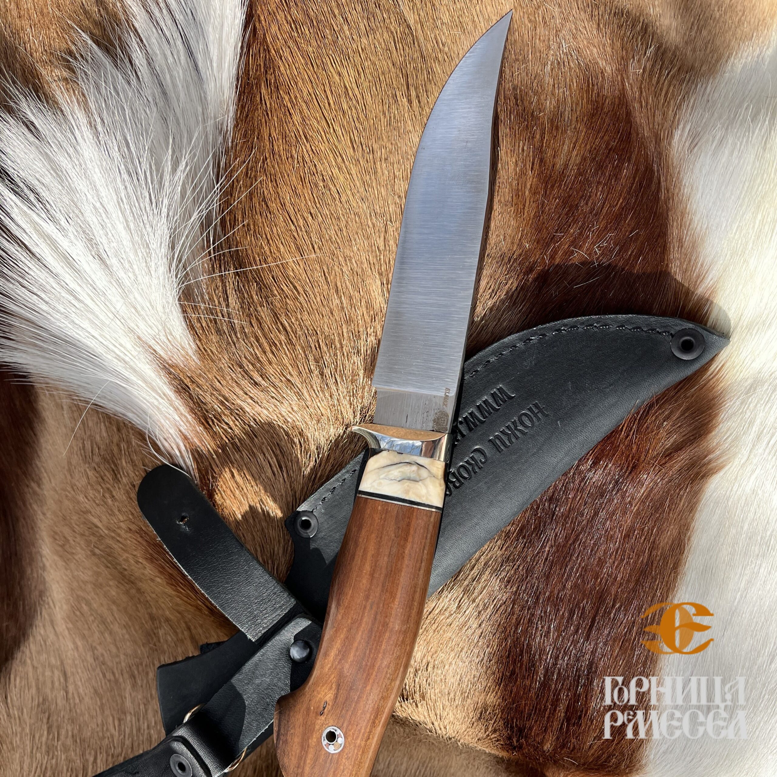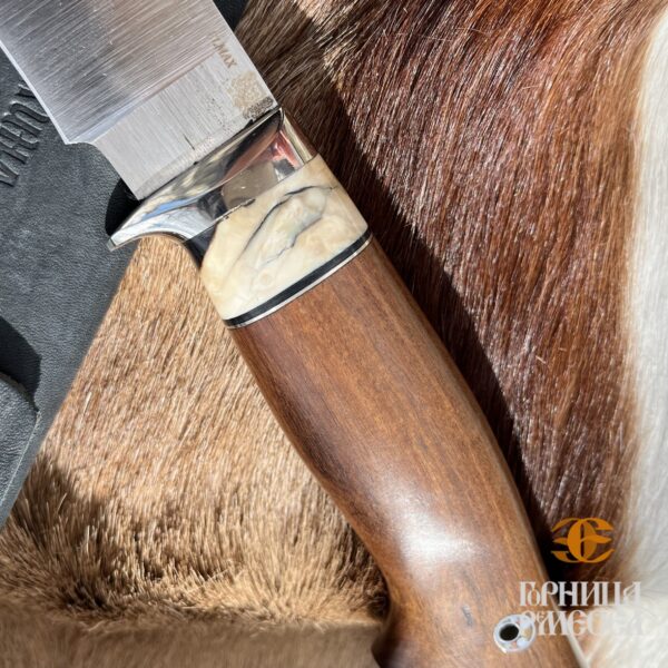 Нож рекомендован к использованию на охоте и в походах. Нож Elmax с рукоятью из кости — воплощение премиального качества, элегантности и мастерства. Клинок выполнен из современного порошкового металла Elmax, обладающего выдающейся твёрдостью, стойкостью к износу и коррозии. Эта сталь используется в производстве высокотехнологичных ножей, где важны долговечность и стабильность режущей кромки. Рукоять, оформленная из натуральной кости, придаёт ножу благородный внешний вид и подчеркивает его статус. Приятная на ощупь фактура, эстетика природного материала и тёплый тон делают этот нож не просто инструментом, а предметом эстетического восхищения. Каждая рукоять уникальна благодаря естественному рисунку и цвету.
