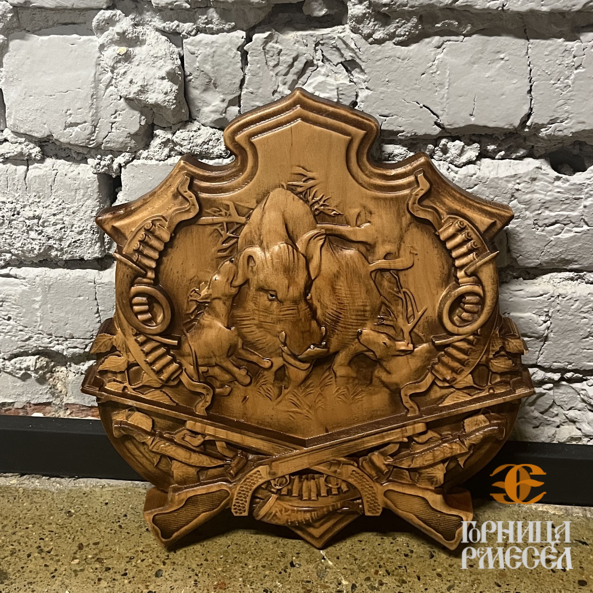 Купить панно «Кабан, собаки, два ствола» можно в Минске в «Горнице ремесел» с доставкой по всей Беларуси и странам СНГ. Почувствуйте дух охоты и мастерство резьбы в каждой детали. Дарите лучшее!