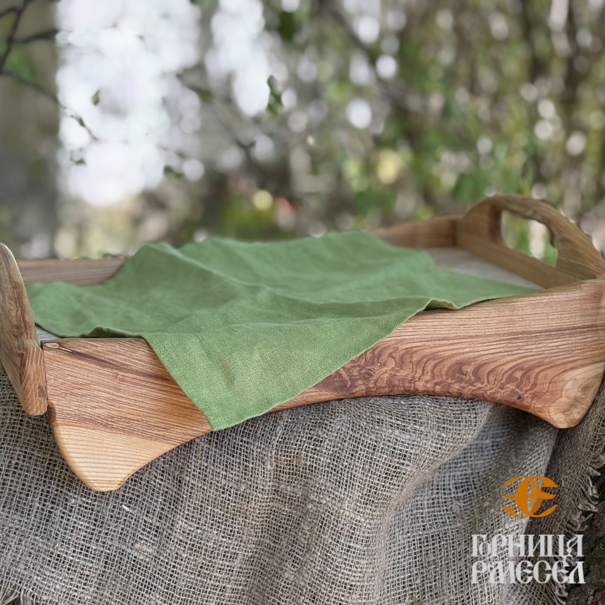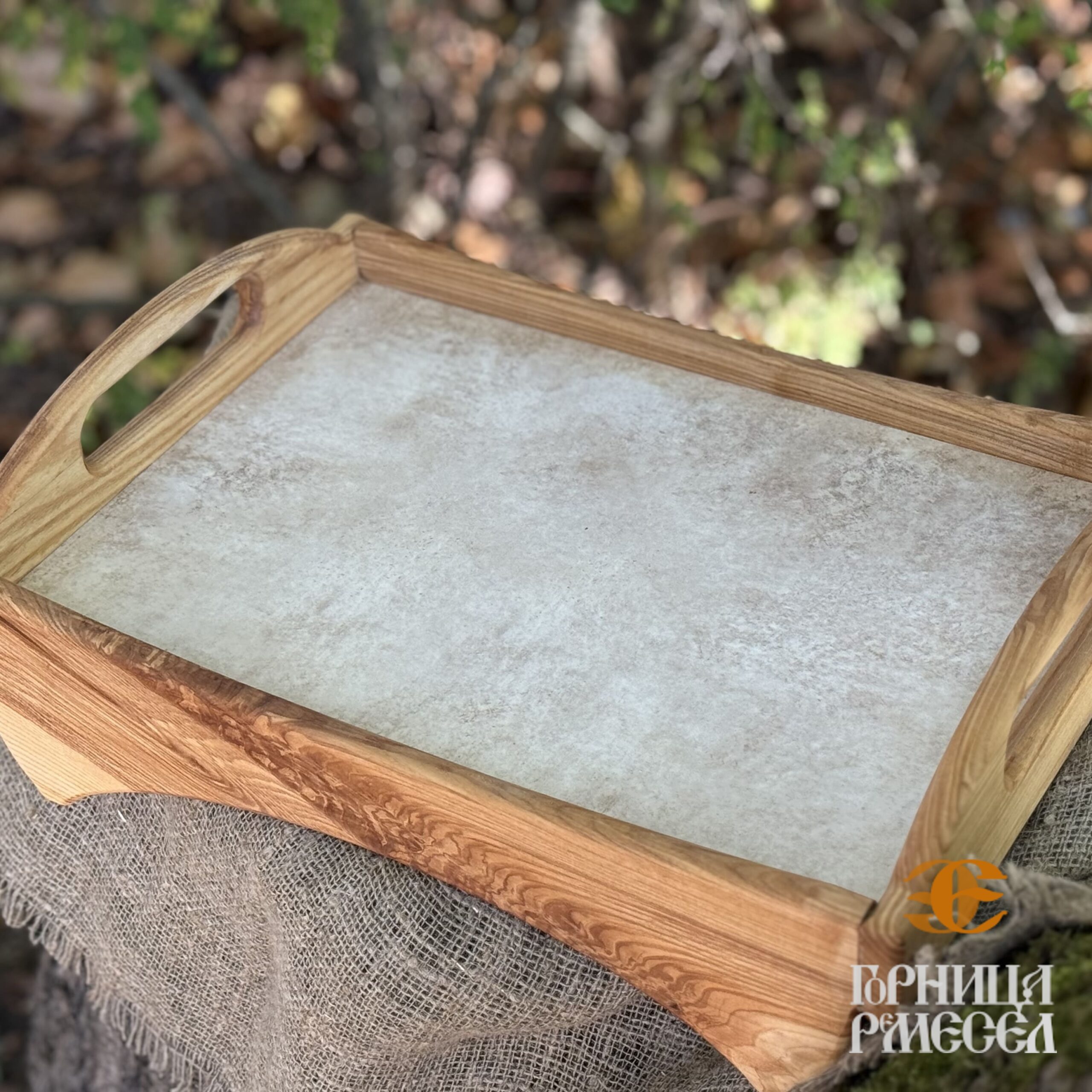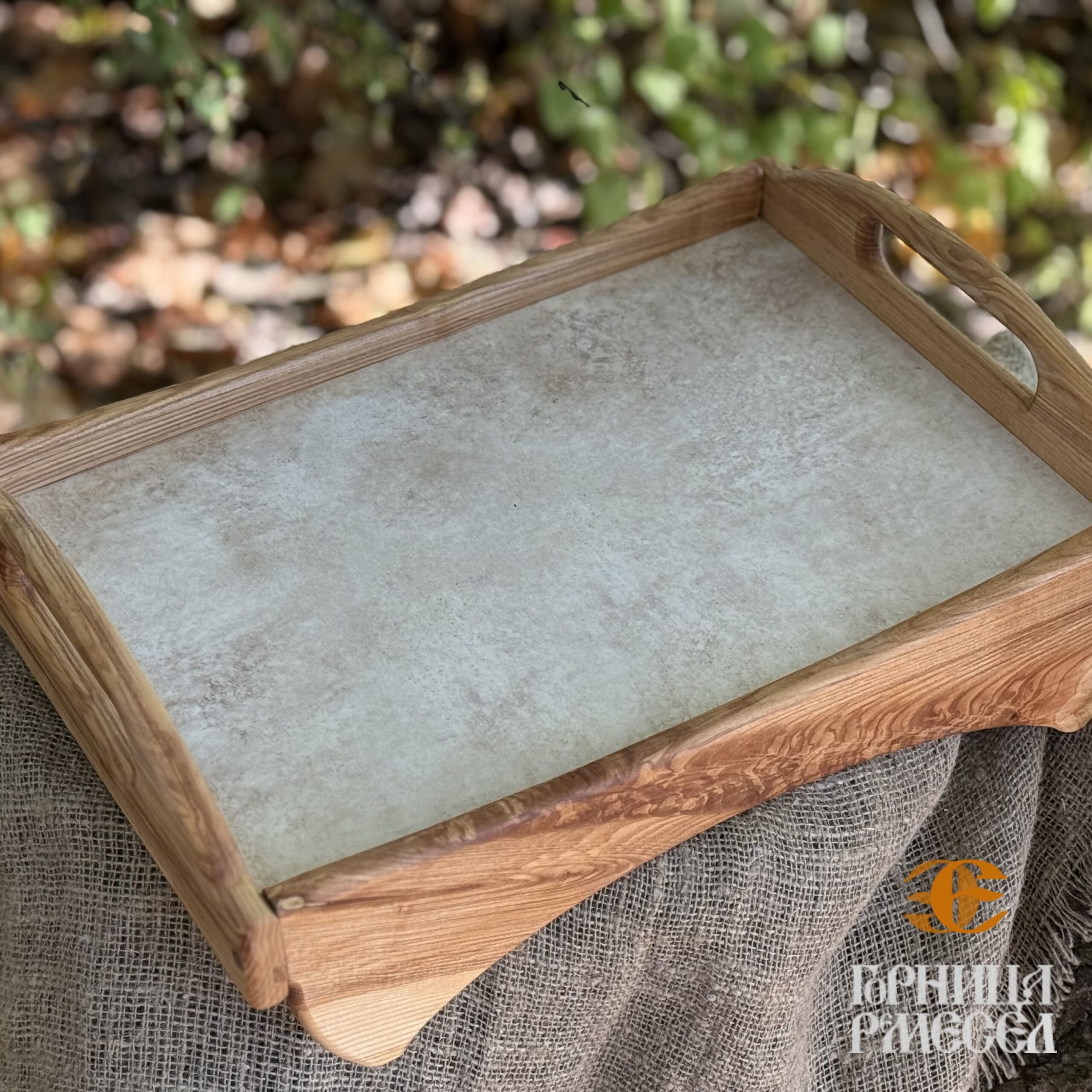 Поднос из массива (дуб) с керамической вставкой