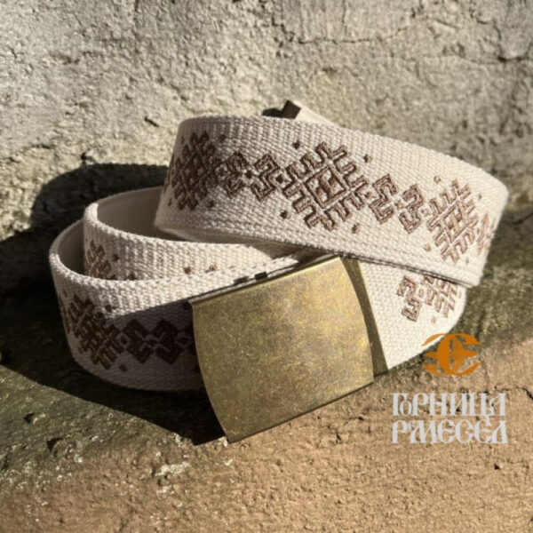 Текстильный Пояс «Сонца» – это стильный аксессуар, который объединяет традиции белорусской символики с современным дизайном. Он изготовлен вручную из натурального хлопка, что обеспечивает комфорт и долговечность. Бежевый цвет делает пояс универсальным, легко сочетаемым с различными стилями одежды. Пряжка-зажим позволяет удобно регулировать размер и надежно фиксирует пояс. Особенное внимание заслуживает декоративная вышивка, которая символизирует белорусское наследие, придавая изделию уникальный характер. Этот пояс идеально подходит как для личного использования, так и в качестве стильного подарка. Он поставляется в красивой подарочной упаковке, что делает его отличным выбором для праздников, юбилеев и других важных событий.
