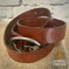 Классический мужской ремень из натуральной кожи коричневого цвета — воплощение элегантности и практичности. Изделие выполнено вручную белорусским мастером с соблюдением всех традиций кожевенного дела.