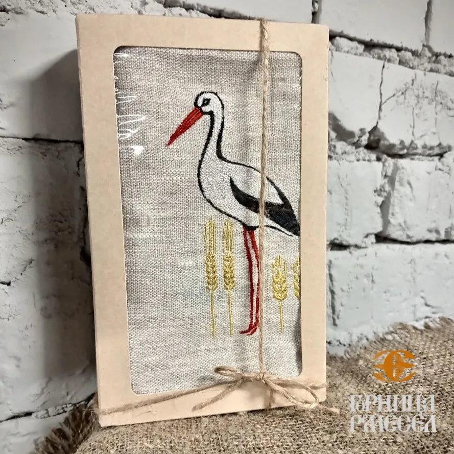 Закажите льняную салфетку «Бусел у каласах» — уникальный аксессуар с национальным колоритом для сервировки и подарка. Создайте свой неповторимый набор!