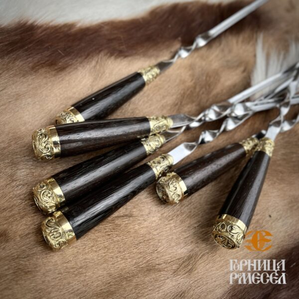 | Рекомендация по уходу | Шампура промыть теплой водой с мягким моющим средством. Следует избегать использования абразивных губок, чтобы не повредить металл. После мытья тщательно протереть шампуры и оставить их полностью высохнуть. Деревянные рукояти можно периодически протирать льняным или миндальным маслом, чтобы сохранить их гладкость и защитить от высыхания. |