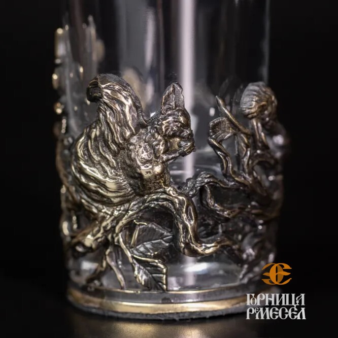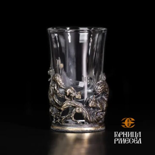 Дизайн стопки вдохновлен образом белок — милых и пушистых созданий, которые всегда вызывают улыбку. Ее форма и отделка напоминают о грации и ловкости этих животных, а золотистый цвет латуни придаёт изделию особый шарм.