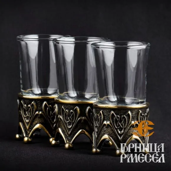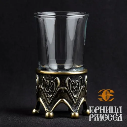 Стопка — это уменьшенная версия «Большой Короны». Представленная подарочная стопка, несмотря на свой скромный размер, обладает харизмой ни чуть не меньшей, чем ее большая версия.. Латунная основа представленной стопки исполнена в виде короны, что предает данному изделию незабываемый вид. Благодаря своему неповторимому дизайну представленная подарочная стопка может стать не только украшением праздничного стола, но и оригинальным украшением интерьера.