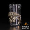Изделие выполнено из стекла и латуни с применением технологии патинирования. Ручная работа придает каждому экземпляру индивидуальность, делая его неповторимым.